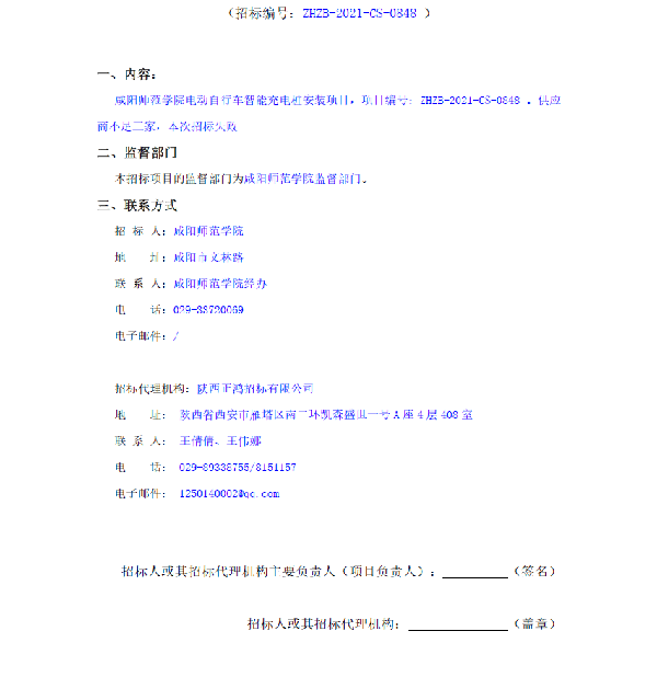 咸阳师范学院电动自行车智能充电桩安装项目废标公告