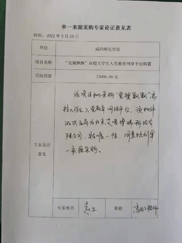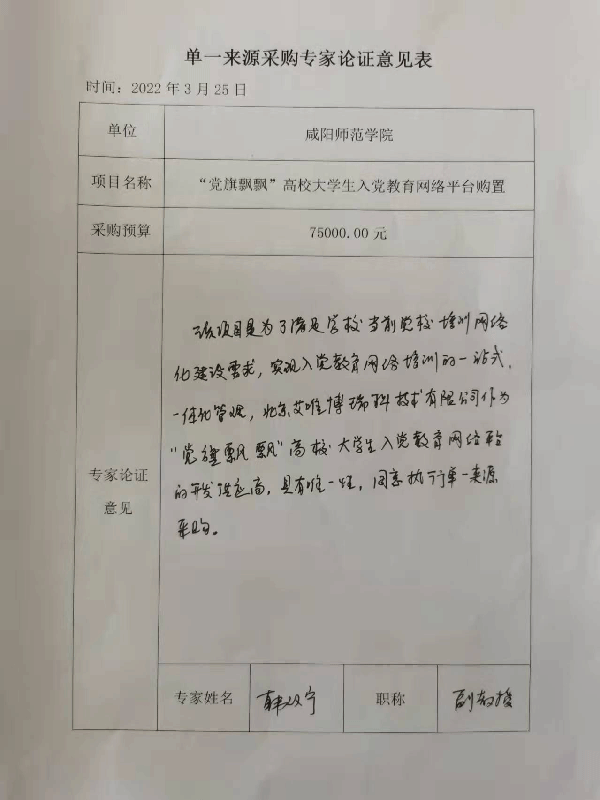 附件:单一来源采购专家论证意见表