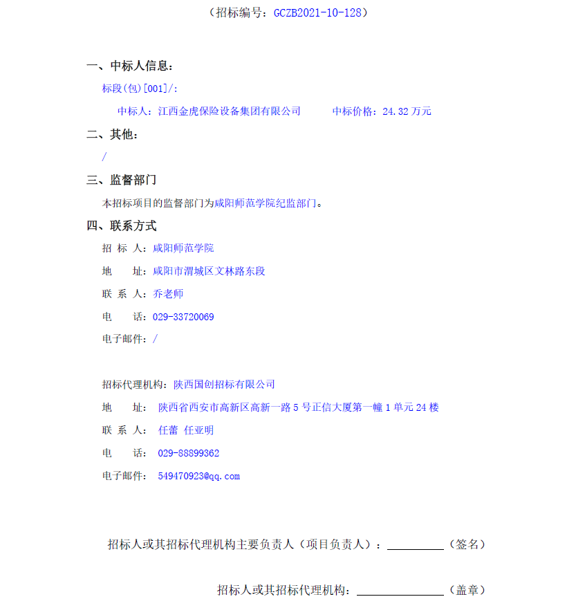 咸阳师范学院图书馆提存库建设项目成交结果公告