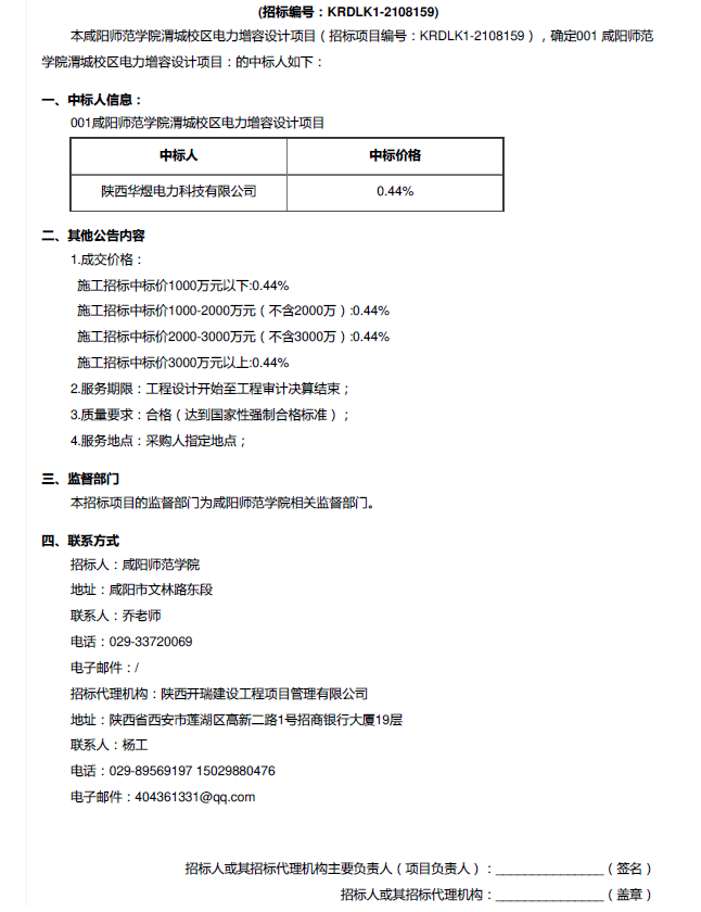 咸阳师范学院渭城校区电力增容设计项目结果公告